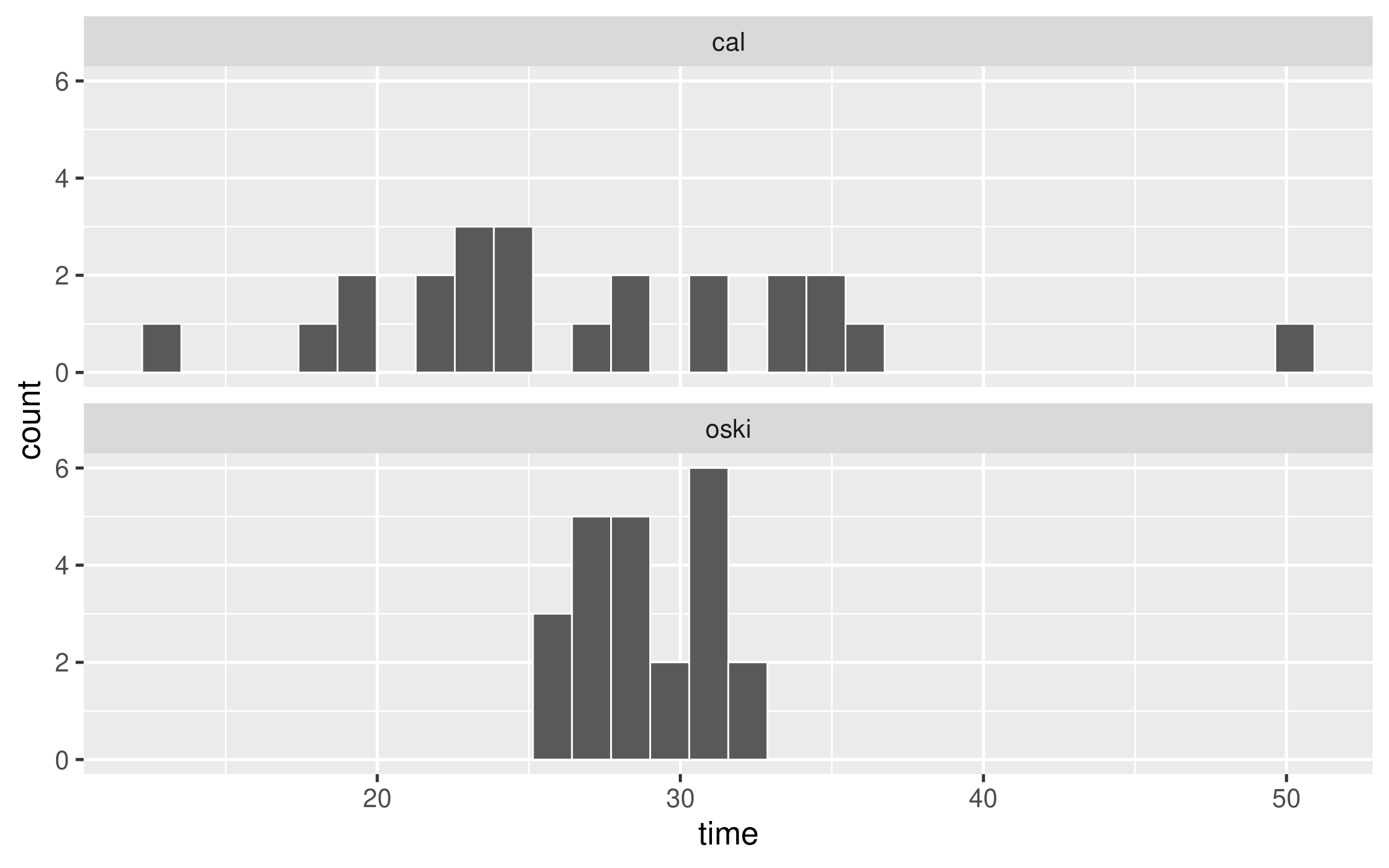 There are two new food delivery services that open in Berkeley: Oski Eats and Cal Cravings. A friend of yours that took Stat 20 collected data on each and noted that Oski Eats has a mean delivery time of 29 minutes and Cal Cravings a mean delivery time of 27 minutes. Which would would you rather order from?