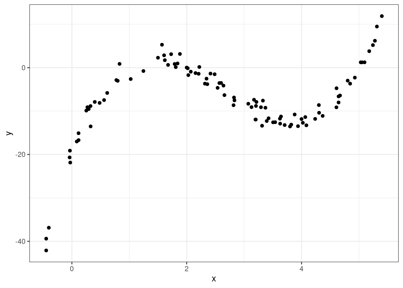 A second strategy is capture non-linear structure by creating new variables that are simple transformations of the existing variable. The third approach, also targeting non-linear structure, is to replace a single predictor with a polynomial.